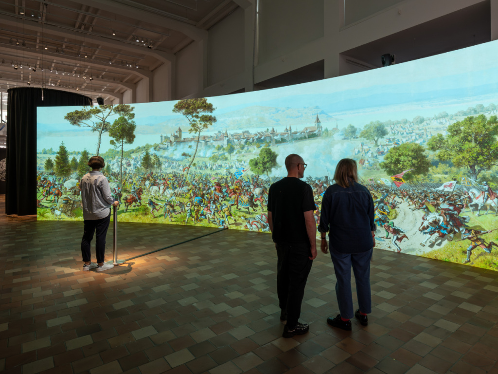 La plus grande image numérique du monde est désormais visible au Musée du design de Zurich. Il s'agit d'une copie numérique de tableau panoramique de la bataille de Morat. Les visiteurs peuvent faire défiler l'image et zoomer. (© Keystone/ Umberto Romito & Ivan ¦uta / Museum für Gestaltung Zürich / ZHdK)