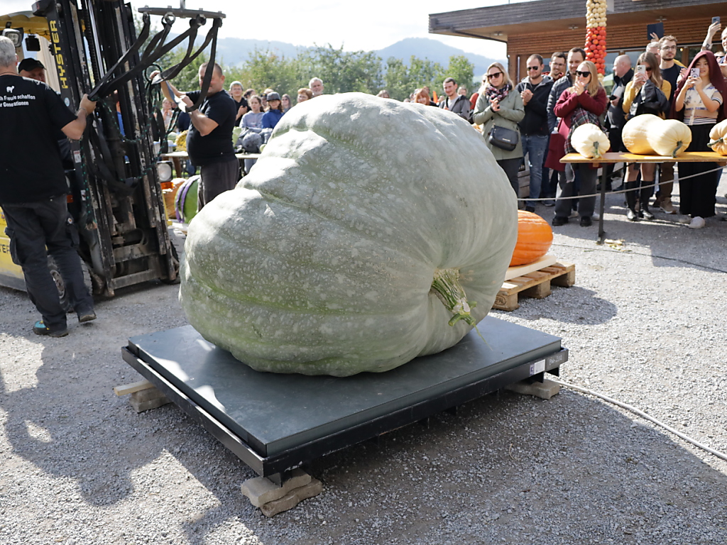 La citrouille la plus lourde de Suisse pèse 727,5 kilogrammes. C'est avec ce spécimen qu'un Zurichois a remporté le championnat suisse de pesage de citrouilles à Jona (SG) samedi.