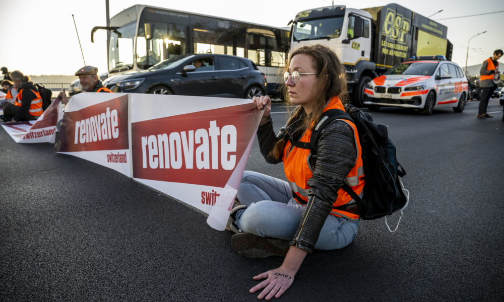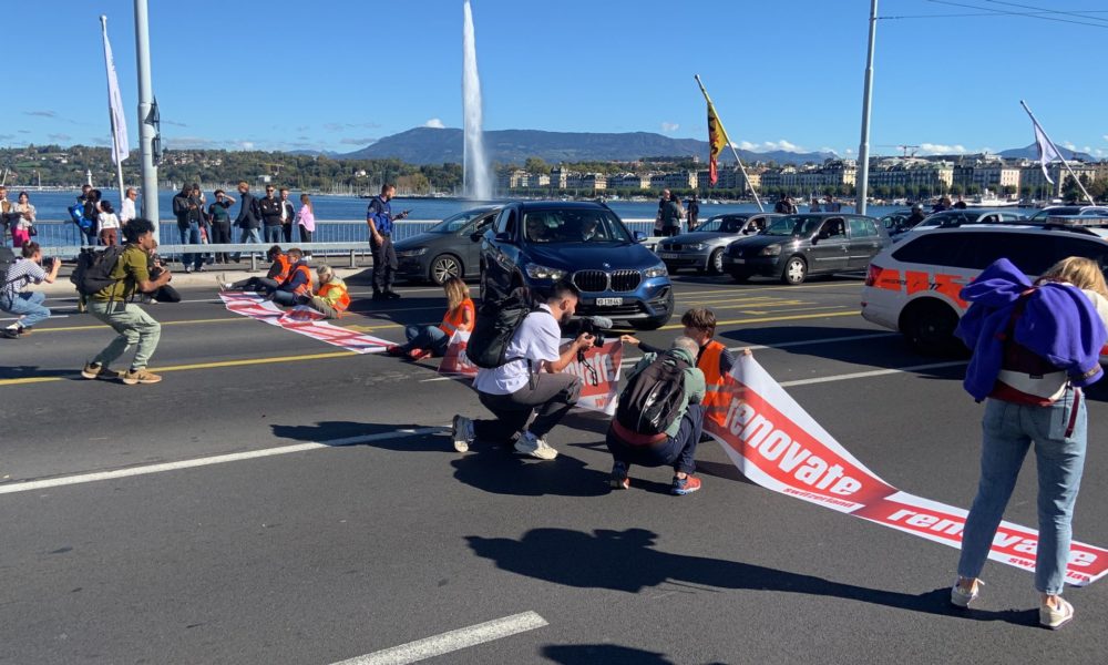 Nouvelle action coup de poing ce samedi, vers 14H, des activistes de Renovate Switzerland à Genève: quatre militants se sont collés la main sur le bitume...