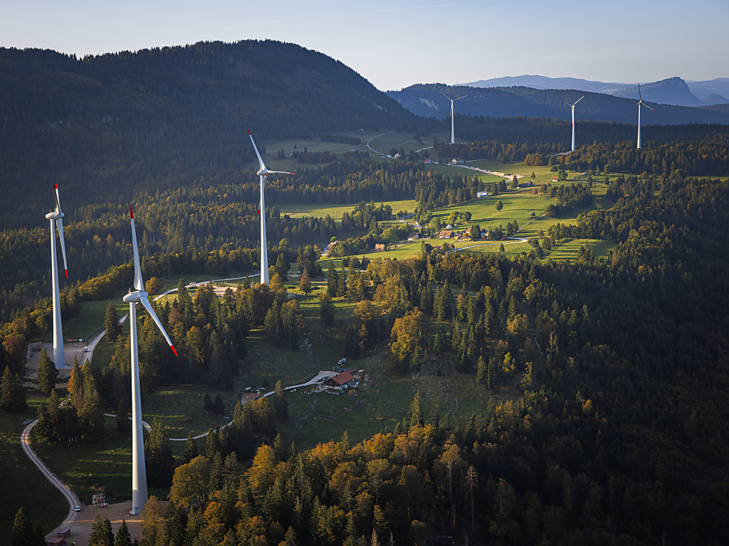 Après le parc éolien de Sainte-Croix, ici en photo, Vaud pourrait accueillir celui de la Grandsonnaz dès 2026 (archives). (© KEYSTONE/VALENTIN FLAURAUD)