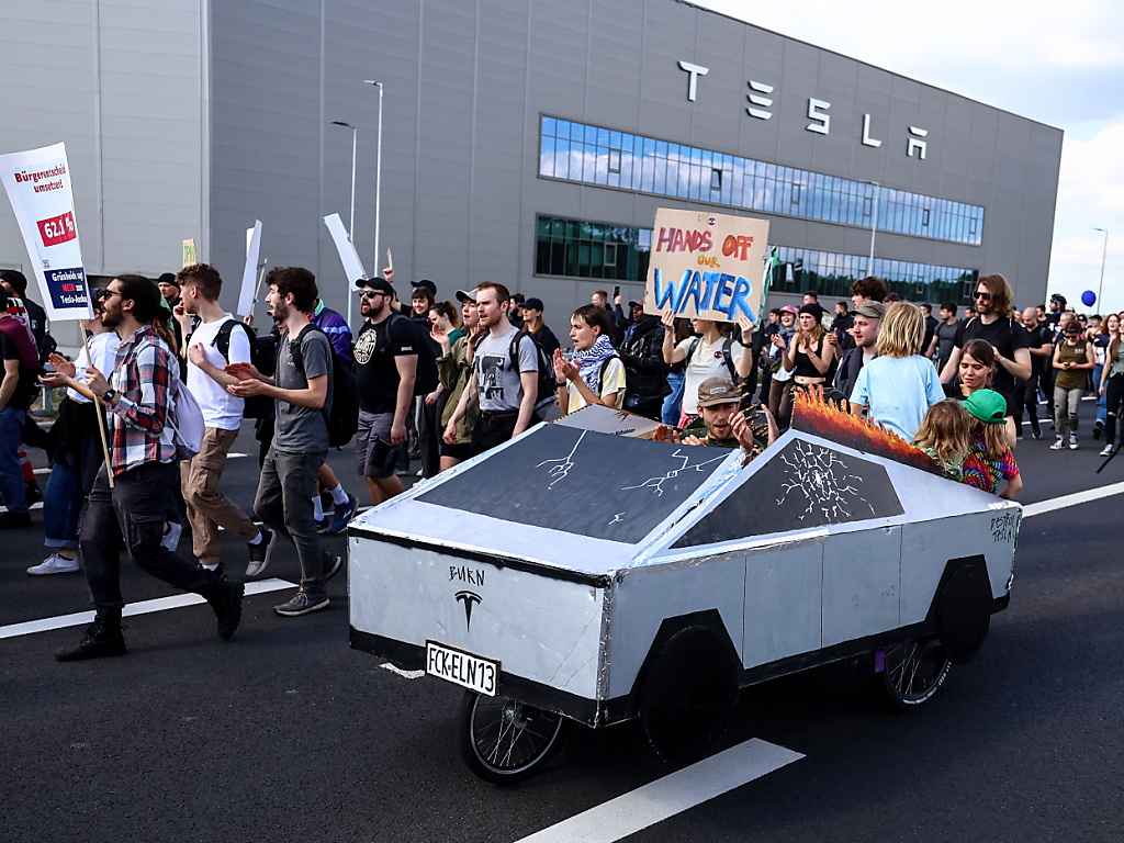 Depuis février des militants écologistes s'insurgent régulièrement contre le projet d'agrandissement de l'usine Tesla. Ils appellent à la sécurité de "l'approvisionnement en eau" et à "une réelle protection du climat", en protestant contre les "solutions capitalistes bidon" d'Elon Musk.