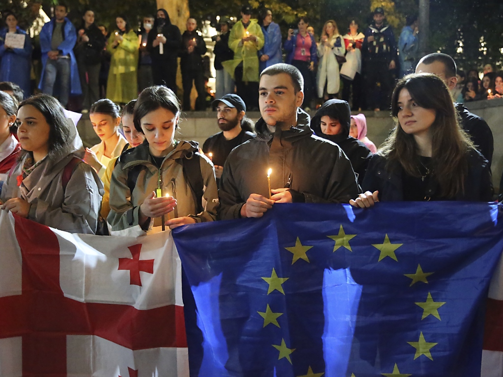 Dans la foule, qui convergeait vers la place de l'Europe, des manifestants arboraient les drapeaux de la Géorgie et de l'Union européenne, que Tbilissi dit vouloir rejoindre, malgré ce texte que ses détracteurs jugent similaire à une législation russe utilisée contre l'opposition.