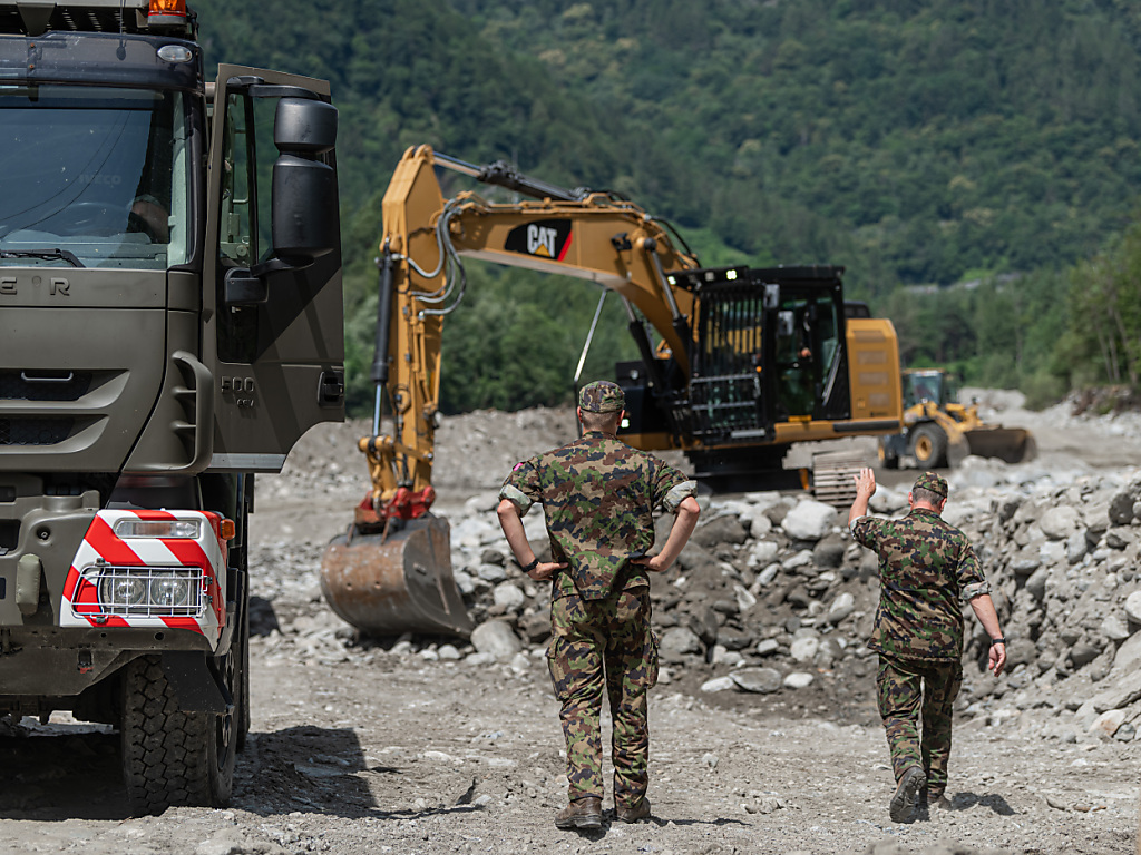 Depuis le 1er juillet, des éléments de l’armée fournissent, à la demande des autorités civiles, un soutien aux cantons du Valais et du Tessin, particulièrement touchés par les intempéries de la fin juin.