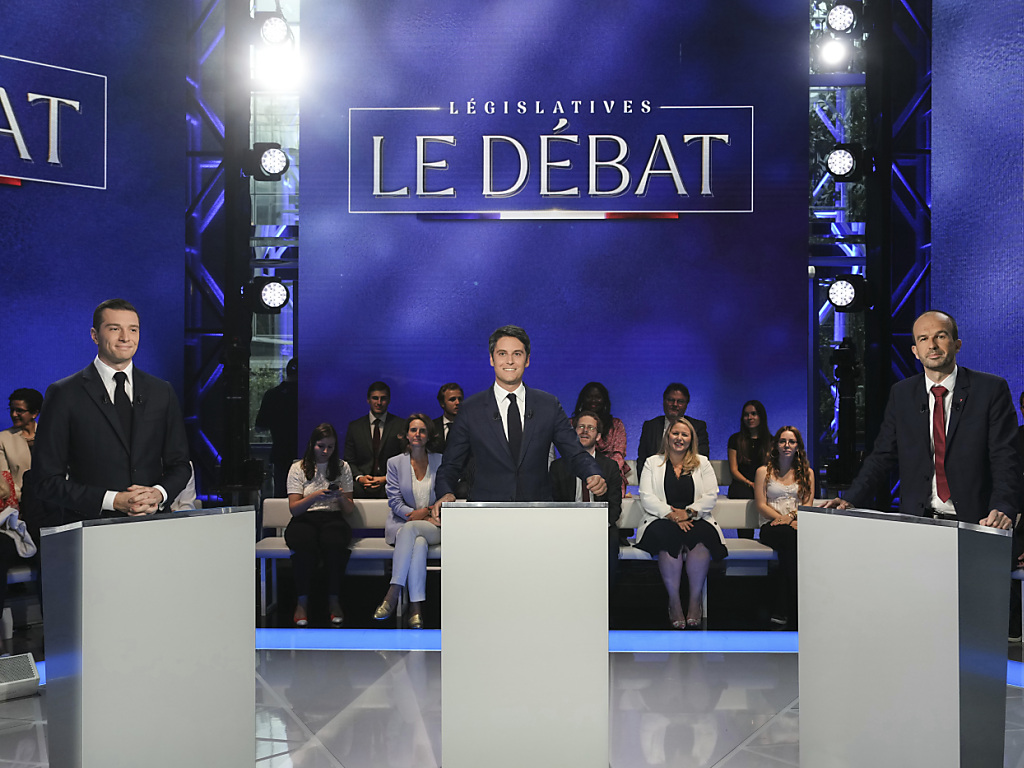 Gabriel Attal, Jordan Bardella et Manuel Bompard se sont écharpés d'entrée de jeu sur la défense du pouvoir d'achat et les retraites mardi soir sur TF1. Selon les sondages, l'extrême droite caracole en tête à cinq jours du premier tour d'élections législatives.