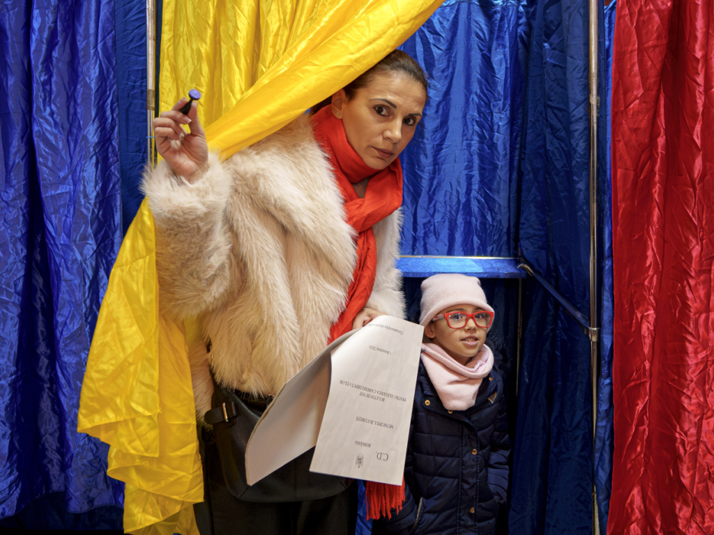 Plusieurs électeurs ont confié leurs craintes que la Roumanie se détourne du chemin européen, comme Dorina Burcea, 41 ans: "Comme personne qui a vécu un peu sous le communisme et qui a pu ensuite profiter de toute l'ouverture de l'UE, je ne peux pas imaginer une autre option que l'UE et l'Otan". (© KEYSTONE/AP/Andreea Alexandru)