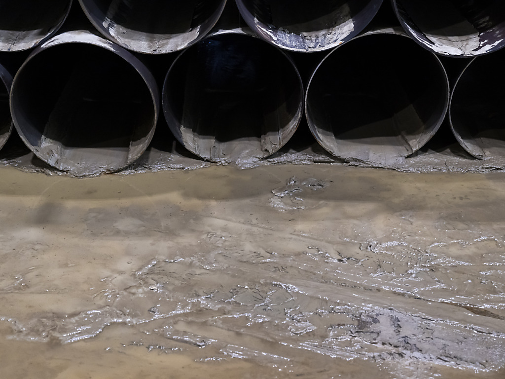 La boue a envahi le site de Novelis après le débordement du Rhône à la fin juin (archives). (© KEYSTONE/JEAN-CHRISTOPHE BOTT)