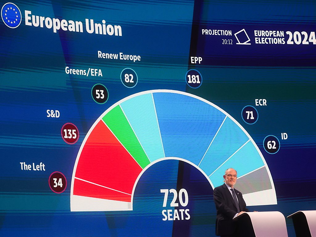 Malgré une poussée des forces d'extrême droite, les groupes du Parti populaire européen (droite), Socialistes et démocrates (S&D) et Renew Europe (centristes et libéraux) conservent à eux trois réunis une majorité au Parlement européen, selon ses projections.