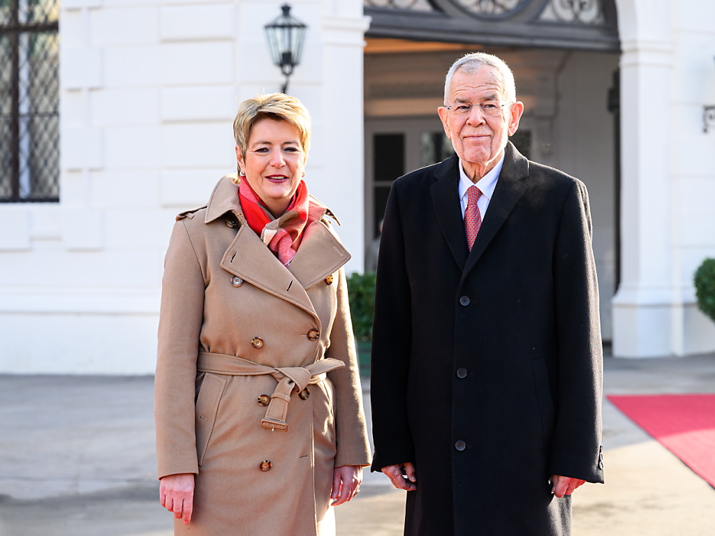 La présidente de la Confédération Karin Keller-Sutter s'est rendue en Autriche pour sa première visite officielle. Elle a été reçu par le président Alexander Van der Bellen. (© KEYSTONE/EPA/MAX SLOVENCIK)