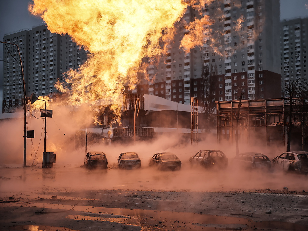 Un journaliste de l'AFP à Kiev a vu des inondations dans la rue sur le lieu de l'attaque et la structure calcinée d'un McDonald's bombardé.