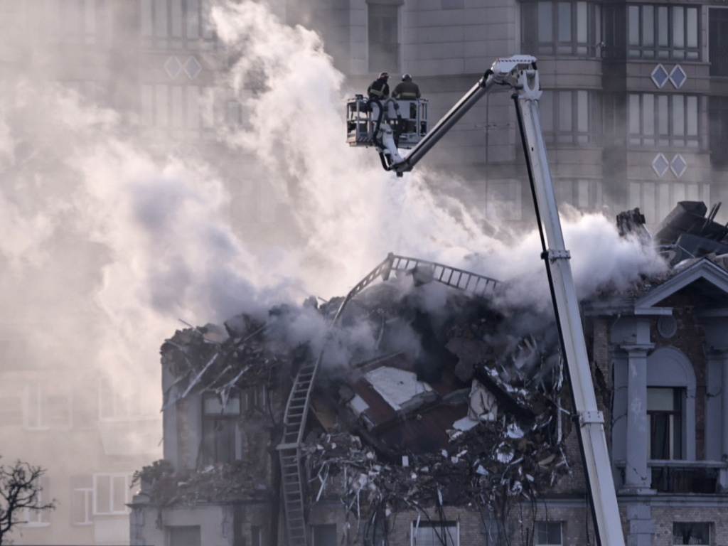 Les secours ont aussi déclaré avoir maîtrisé l'incendie qui a endommagé un immeuble résidentiel et un bâtiment administratif dans le quartier de Petchersk, au centre-ville historique de la capitale, un feu causé par des chutes de débris de drones abattus par la défense aérienne.