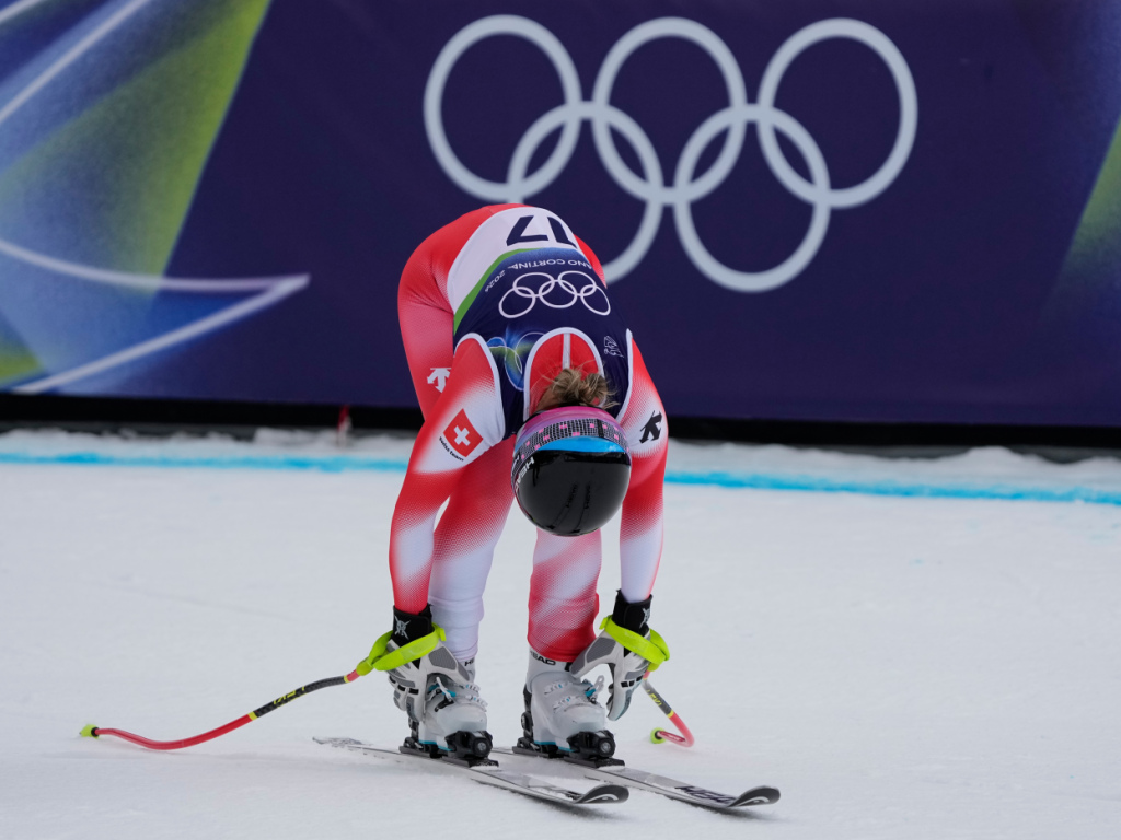 Corinne Suter seulement 12e de la descente du combiné à Cortina (© KEYSTONE/AP/Andy Wong)
