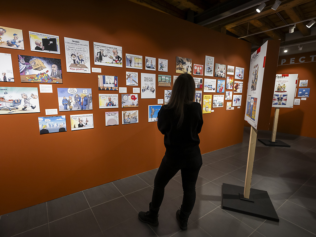 La Maison du dessin de presse de Morges, ici lors de la rétrospective 2023, consacre sa nouvelle exposition au sport (archives). (© KEYSTONE/MARTIAL TREZZINI)