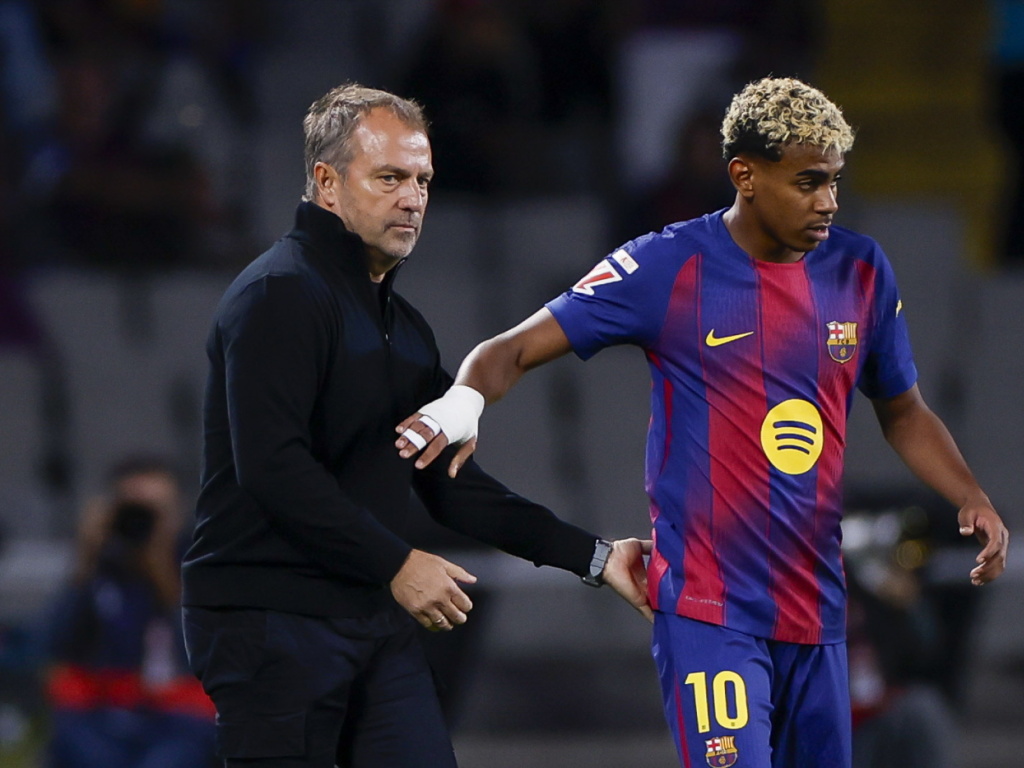 Hansi Flick et Lamine Yamal espèrent bien faire chuter le PSG (© KEYSTONE/EPA/Alberto Estevez)