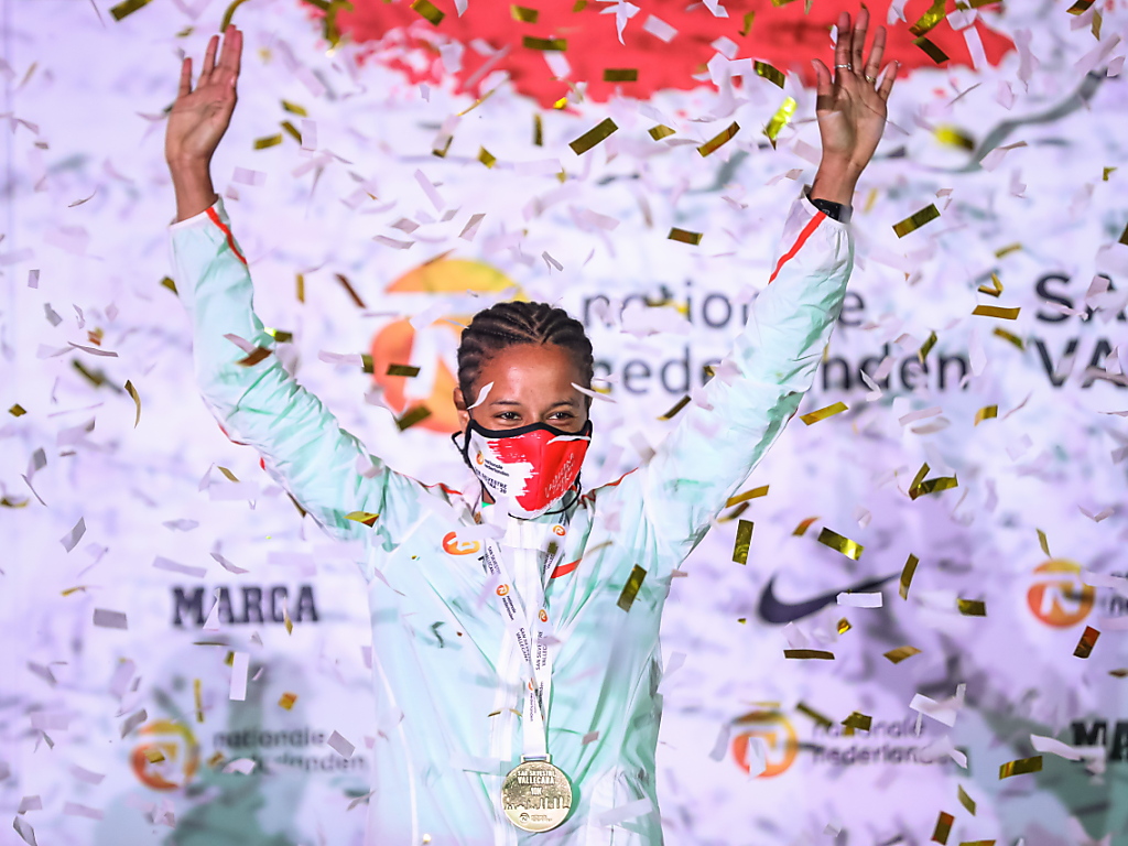 Yalemzerf Yehualaw lors de sa victoire à la dernière course de la St-Sylvestre à Madrid. (© KEYSTONE/EPA EFE/EMILIO NARANJO)