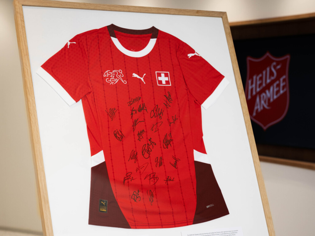 Le maillot a été dédicacé par les joueuses de l'équipe de Suisse. (© Keystone/Stiftung Heilsarmee Schweiz)