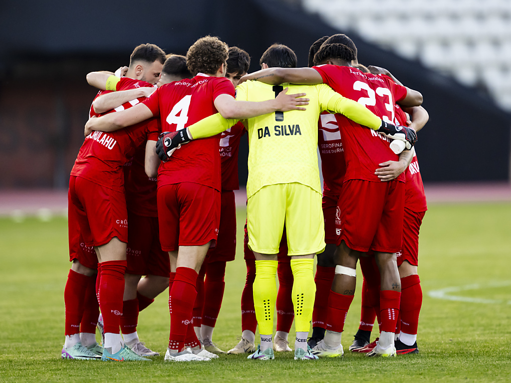 Les joueurs du Stade Lausanne-Ouchy vivent sans doute leurs derniers matches en Super League. (© KEYSTONE/JEAN-CHRISTOPHE BOTT)